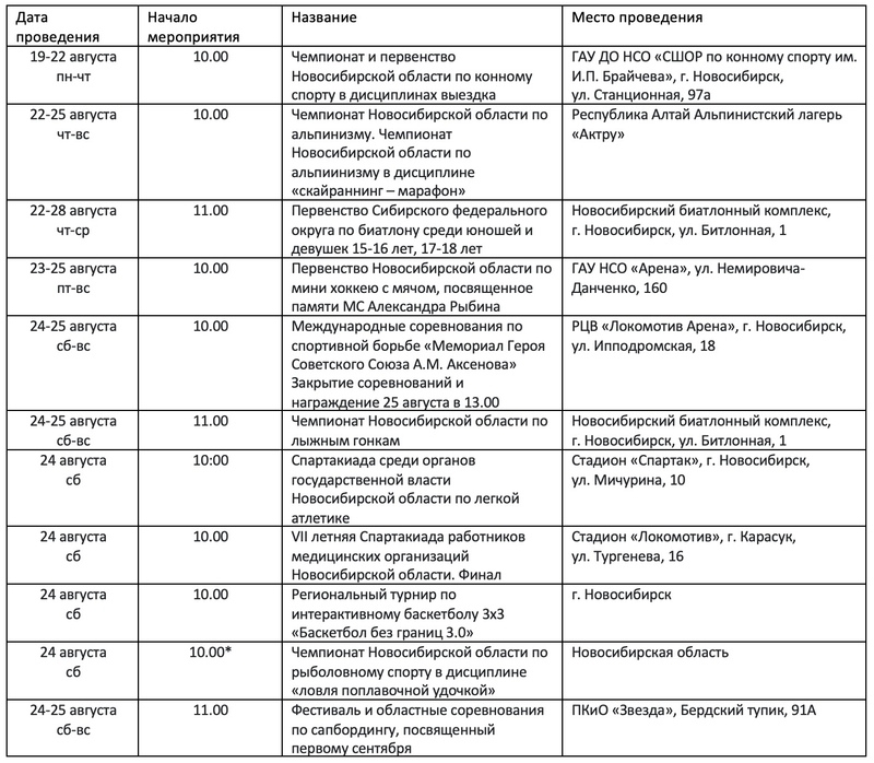 К посещению на этой неделе можно рассмотреть следующие спортивные мероприятия: