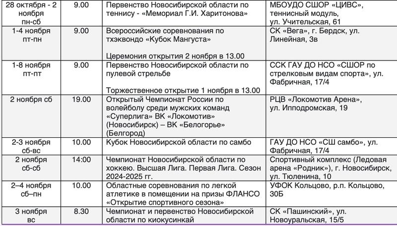 Список ближайших спортивных мероприятий по нашей рекомендации.