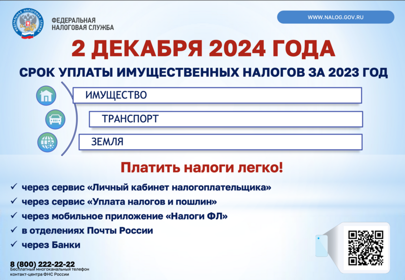 Информируем, что срок уплаты налогов 2 декабря 2024 года