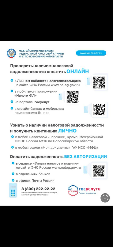 Межрайонная инспекция Федеральной налоговой службы № 17 по Новосибирской области предлагает жителям региона не оставаться в долгу перед бюджетом.