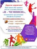 Отдел по делам молодежи, культуре и спорту администрации Коровского района города Новосибирска проводит онлайн конкурс "Я - чемпион"