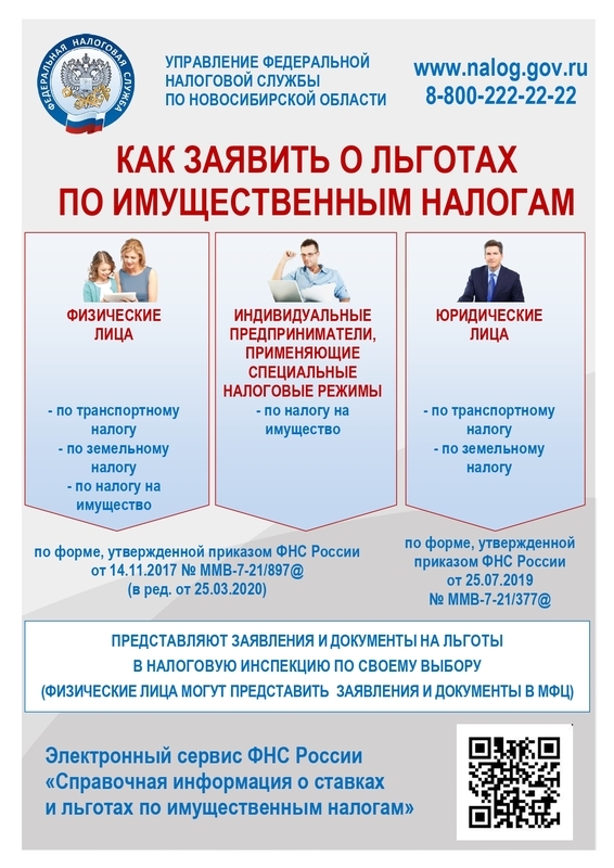 УФНС России по Новосибирской области рекомендует в течение 1-го квартала 2022 года представить заявление о налоговой льготе жителям региона, у которых впервые в 2021 году возникло право на льготу по транспортному, земельному налогам и налогу на имущество физических лиц.